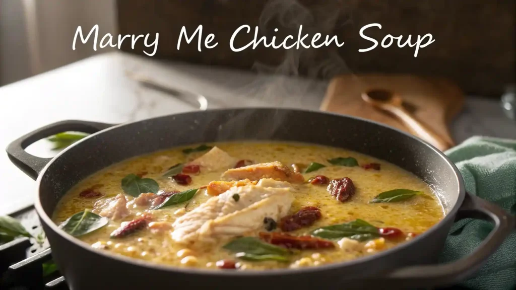 I still remember the first time I heard the phrase “Marry Me Chicken.” My mom was standing by the stove, humming softly as she stirred a skillet of creamy chicken dotted with sun-dried tomatoes and fresh basil. The kitchen smelled like love itself—warm, buttery, a little tangy—and when I asked what she was making, she smiled and said, “If someone cooks this for you, you might just marry them.” That cheeky line stuck with me for years. When I later turned that beloved recipe into a soup, the name came naturally: Marry Me Chicken Soup.
